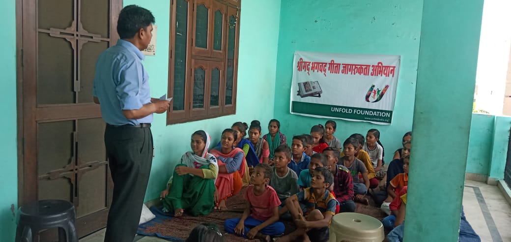 “Shrimad Bhagwan Gita jaagrukta Abhiyan” ……….a campaign for awareness and reading of Shrimad Bhagwan Gita in an easy and understandable way …………started by Unfold Foundation for our children at Mujesar urban slum in Faridabad on 28th May
